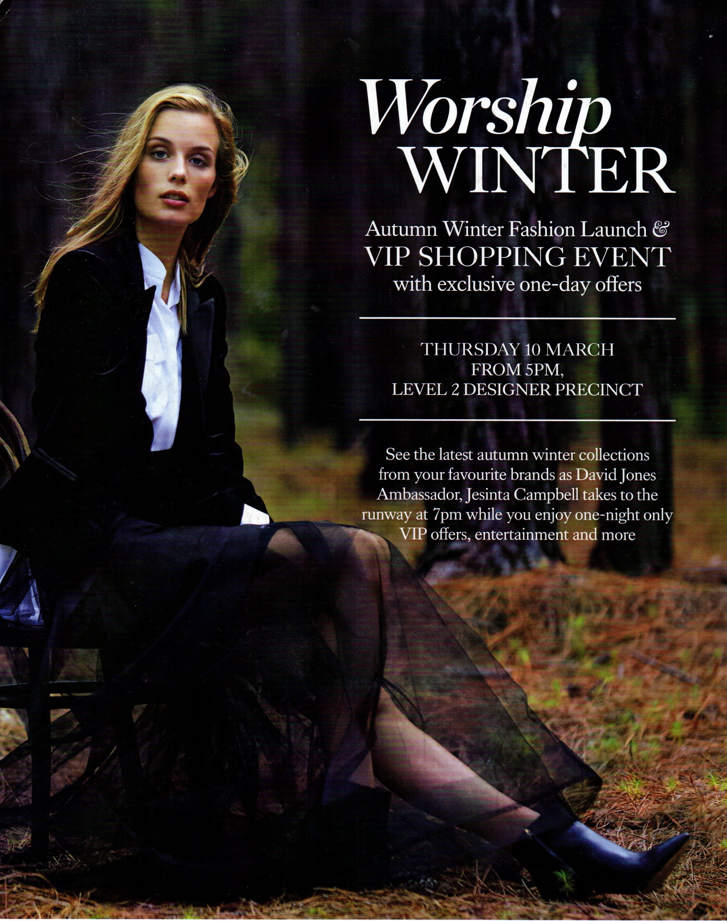 On this particular occasion a guest presenter was coming. Jesinta Campbell would be on the stage, as an ambassador for David Jones. I had never heard of Jesinta before, but the promotions material all assured me I wouldn't want to miss out on what she had to say (actually I don't know if she was going to say anything, or just walk about looking glamorous).