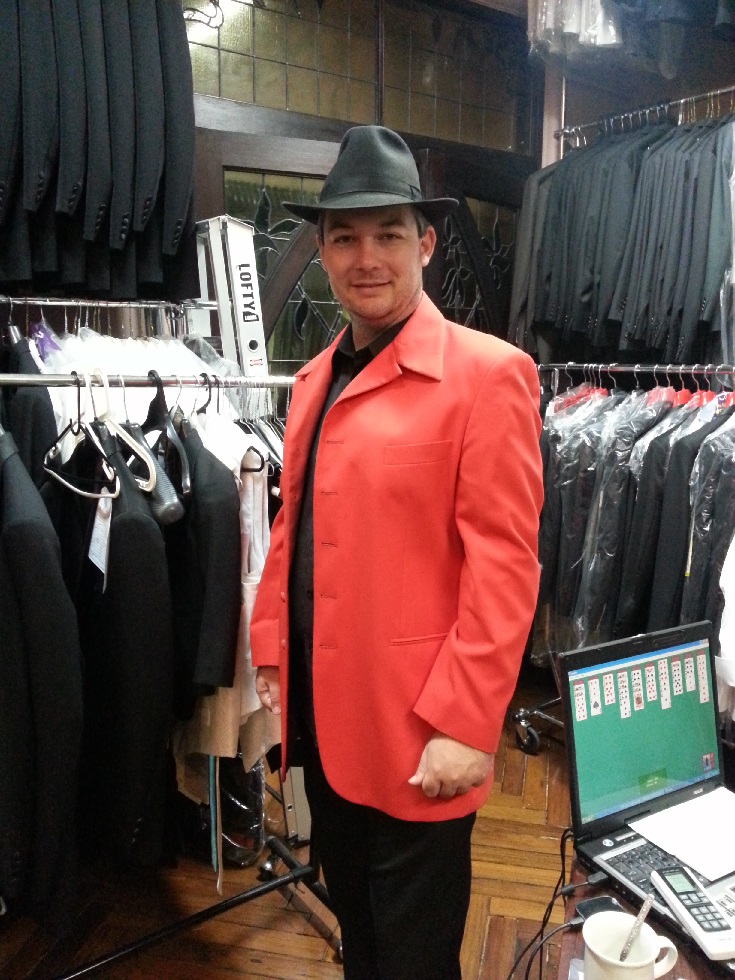 Eventually I managed to get inside to await the dreaded and spine chilling “Is there something I can help you with?” It was not forthcoming. The shop attendant, obviously not impressed by the suit (Maybe I should have gone with the red one), blithely ignored me. It had taken everything I had just to get in the door, so approaching her and speaking to her were obviously out of the question. Fortunately, despite being manically unhinged, I am still reasonably intelligent and knew there was one sure way to get her attention. Well… two ways, but taking my clothes off and singing the national anthem didn’t seem like it would help my cause at all, so I went with the other plan and casually strode over to the wall to examine something that looked expensive, with a pensive look on my face (Damn, I was going for thoughtful).